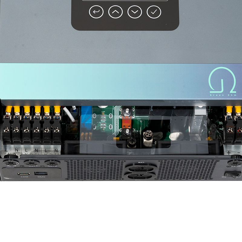 Inversor fuera de la red de 3,6 kW, adecuado para hogares, oficinas y pequeños comercios. Equipado con tecnología dual MPPT (Maximum Power Point Tracking) para mejorar la eficiencia de generación de energía del sistema solar, garantizando que se pueda recolectar más energía en diferentes condiciones de luz solar. Admite el modo de suministro directo sin batería (por ejemplo, suministro solar directo diurno a cargas de CA). En comparación con el modelo básico, tiene mayor potencia y admite topologías de potencia más complejas.